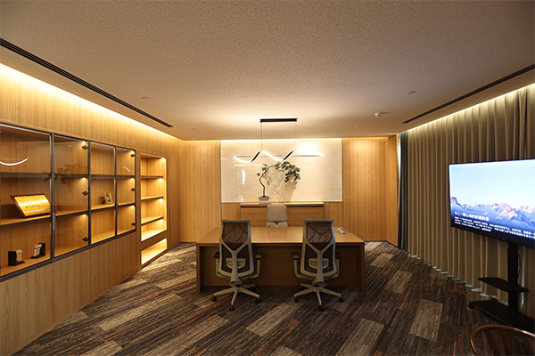 描述:办公室的装修风格反映了公司的文化,同时也为员工提供了更舒适的办公环境。在艾德深圳总部装修设计之初,就决定使用LX的高品质木纹系列作为墙面装饰的主要材料。员工区采用浅色原木的简约风格,总经理办公室则采用深色胡桃木纹系列,非常大气。