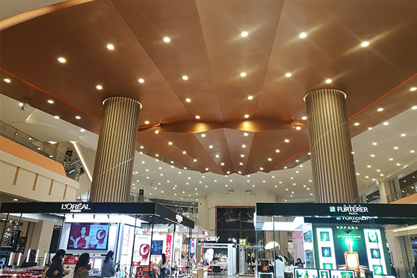 描述:上海第一百货位于南京路步行街,拥有悠久的历史。此次翻新旨在提升整体品质和营造舒适的购物环境。选材必须满足以下要求:交货迅速、施工周期短、环保、阻燃、无异味等。最终决定采用LX(LG)木纹膜作为其表面装饰的主要材料。完工后效果显著。